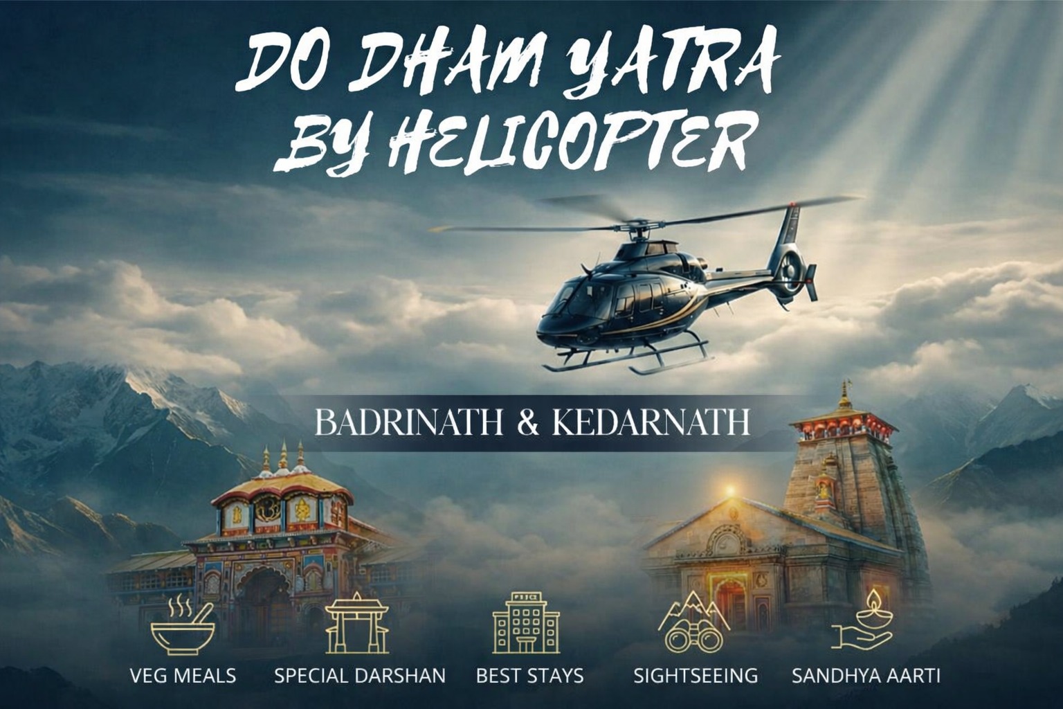 Welcome to a Divine Journey with Jhakaas Holidays! Get ready for the most unforgettable spiritual adventure of your life with our Char Dham Yatra by Helicopter package. This exclusive 5N/6D tour, starting and ending in Dehradun, takes you to the four most sacred abodes of the gods: Maa Yamamori, Maa Gangotri, Shri Kedarnath, and Shri Badrinath. Special Features of the Char Dham Yatra: • Helicopter Service: Soar through the skies with comfort and ease, taking in breath taking aerial views of the Himalayan peaks. • Luxurious Services: Indulge in top-notch services, including VIP Priority Darshans, at Badrinath to ensure a smooth and blessed experience. • Comfortable Stays & Gourmet Meals: Relax in premium accommodations and savor delicious meals after each day of spiritual exploration. • VIP Puja: Experience exclusive, guided pujas at each Dham, enhancing your spiritual connection. • Expert Handlers: Our knowledgeable handlers ensure a hassle-free and enriching journey from start to finish. Jhakaas Holidays has been providing trusted, reliable, and caring services to thousands of pilgrims, making their Char Dham experience memorable and seamless. With best price guarantees and a promise to make your yatra extraordinary, book your journey with us today. Let your soul soar as you embark on a once-in-a-lifetime pilgrimage to the sacred Char Dham!The Spiritual Significance of Char Dham Yatra In Hinduism, pilgrimage is not merely a physical journey; it is a profound spiritual experience that allows devotees to deepen their connection with the divine, seek atonement for their sins, and enhance their spiritual growth. Among the most revered pilgrimages in India is the Char Dham Yatra, a journey that takes devotees to four sacred sites nestled in the Himalayas— Maa Yamunotri, Maa Gangotri, Shri Kedarnath, and Shri Badrinath. This pilgrimage holds immense spiritual significance for Hindu devotees in India and across the globe, acting as a pathway for inner healing, self-realization, and ultimately, moksha or salvation. Defining Char Dham Yatra The Char Dham Yatra refers to a pilgrimage to four sacred shrines in India, each representing a different aspect of divinity. Maa Yamunotri is dedicated to Goddess Yamuna, Maa Gangotri to Goddess Ganga, Kedarnath to Lord Shiva, and Badrinath to Lord Vishnu. These sites are considered the abodes of the divine and are believed to possess powerful spiritual energy. The Char Dham Yatra can be undertaken between April/May and October/November. Spiritual Significance of the Pilgrimage The pilgrimage itself is a physical manifestation of one's devotion to God. It is an act of surrender, where the devotee submits to the divine will and seeks guidance from the gods. As the devotee moves from one holy shrine to another, they are not only progressing on their journey through the physical world but also deepening their spiritual journey. The Char Dham Yatra is seen as a form of ‘tirtha’—a pilgrimage to holy places that bring spiritual merit. The act of visiting these places is believed to purify the soul, remove negative karma, and grant divine blessings that lead to spiritual progress. The Obligation of Pilgrimage in Hinduism The Char Dham Yatra is seen as a once-in-a-lifetime obligation for most of the Hindus, where they can pay homage to the divine manifestations of Maa Yamuna, Maa Ganga, Lord Shiva, and Lord Vishnu. Pilgrims believe that the mere act of visiting these sacred sites brings them closer to attaining spiritual liberation. For some, it is a quest for redemption, a way to purify their sins and achieve spiritual freedom from the burdens of worldly existence. Cleansing of Sins and Spiritual Healing One of the most significant aspects of the Char Dham Yatra is its ability to cleanse the devotee of sins and the negative effects of past actions (Karma). In Hindu belief, sins are not just limited to immoral acts but also the consequences of negative thoughts, words, and deeds accumulated over lifetimes. Pilgrims believe that by bathing in the sacred rivers of Yamuna and Ganga, and by offering prayers and rituals at the temples, they are absolved of these sins. The sacred water of these rivers is considered purifying, and by immersing oneself in them, a devotee’s soul is believed to be cleansed. Shri Kedarnath and Shri Badrinath, dedicated to Lord Shiva and Lord Vishnu respectively, are believed to provide the divine blessings necessary for inner transformation and healing. Kedarnath, for instance, is regarded as a place where devotees can experience liberation from the cycle of birth and death. Similarly, the presence of Lord Vishnu at Badrinath is considered a path to divine grace, bestowing wisdom and spiritual growth upon the devotees. Conclusion The Char Dham Yatra is far more than a physical pilgrimage—it is a journey of the soul. For Hindus, it represents an opportunity to purify the soul, cleanse oneself of past sins, and deepen their connection with the divine. Through spiritual practices such as prayer, meditation, and selfreflection, pilgrims undergo profound spiritual growth that leads to self-realization and ultimately, moksha. The Char Dham Yatra embodies the essence of Hindu spirituality—a path of devotion, self-discipline, and inner transformation that guides the devotee toward enlightenment and liberation from the cycle of life and death. It is a sacred journey that continues to inspire millions of Hindus to walk the path of righteousness and spiritual fulfilment. KEY INFORMATION Tour Briefing & Luggage: ● A comprehensive tour briefing will be conducted by our team at your hotel in the evening. ● Each participant will be provided with a duffel bag to pack essential items, with a weight limit of 5kg. Larger luggage can be stored in the hotel cloakrooms, as carrying big bags or suitcases on the helicopter is not permitted. Useful Tips: ● Packing: Travel light, as you'll be flying by helicopter. Essential items include w